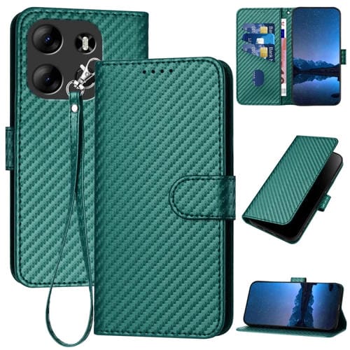 Funda para Tecno Spark Go 2023 Yx0070 de Cuero con Hebilla de Fibra de Carbono y Cordón (Verde Oscuro)