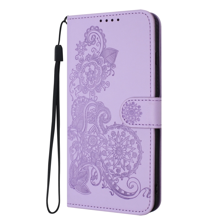 Funda de Cuero para Tecno Spark Go 2024 Datura Flower con Tapa En Relieve (Púrpura)
