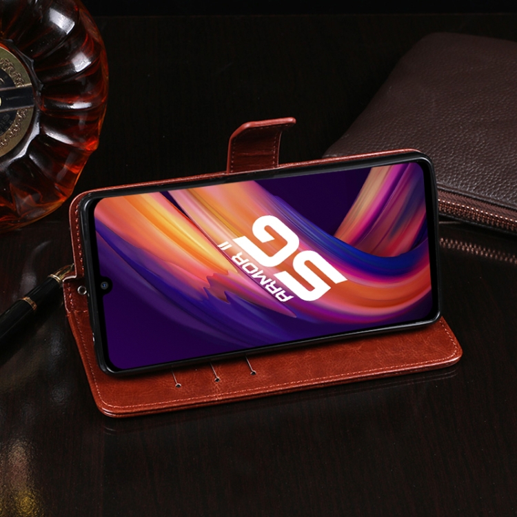 Funda de Cuero Idewei para Ulefone Armor 11 5G con Soporte y Ranuras (Marrón)