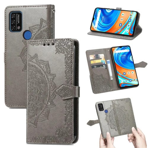 Funda de Cuero Horizontal para Umidigi A9 Mandala Flower con Tarjetero y Billetera (Gris)