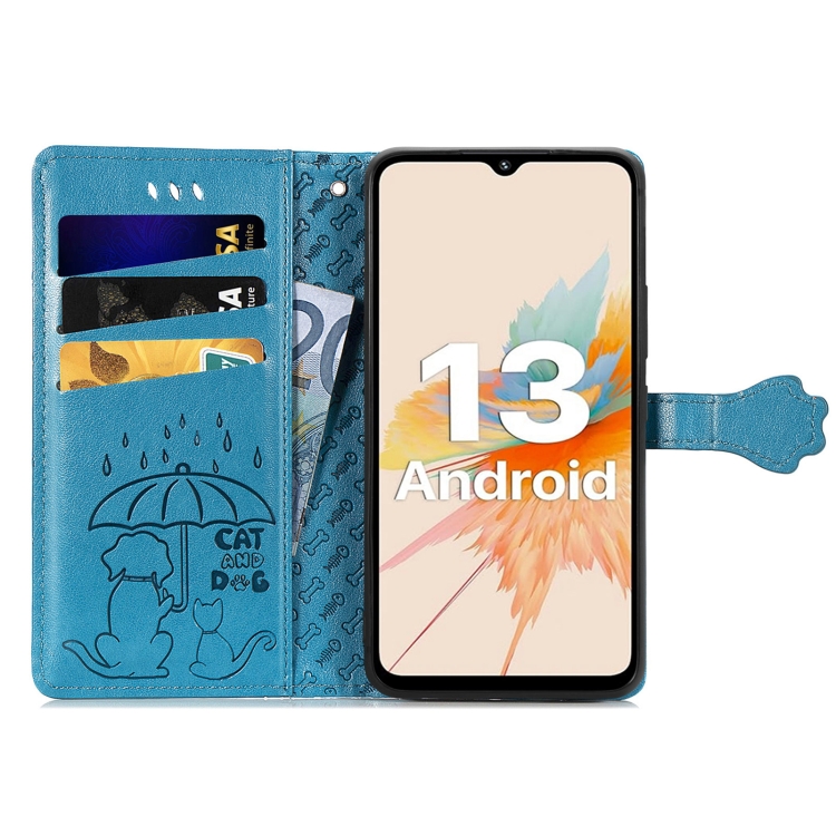 Funda para Umidigi G5 / G5A de Cuero con Relieve de Perros y Gatos (Azul)