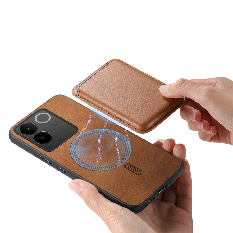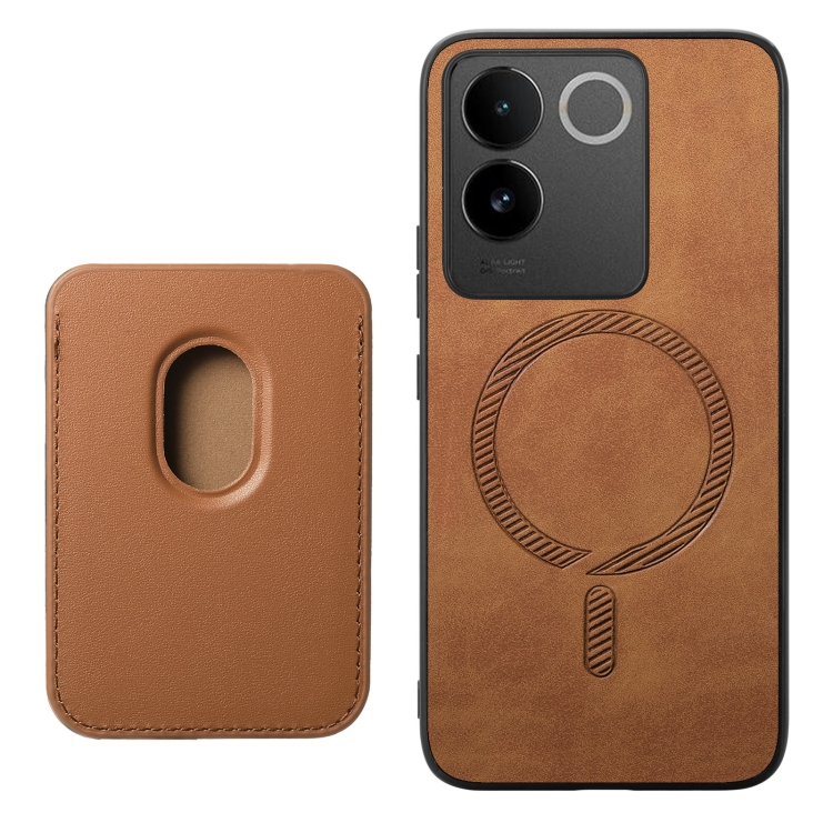 Para Vivo Iqoo 11 Pro 5G Retro Magsafe Card Bag Pu Funda para Teléfono con Contraportada (Marrón)