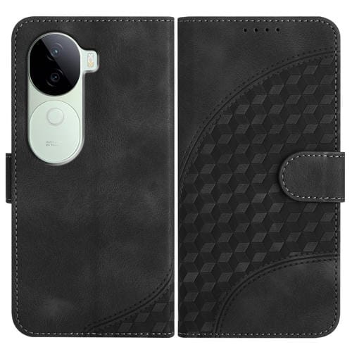 Para Vivo Iqoo Z9S / V40E India Yx0060 Funda de Cuero para Teléfono con Relieve de Cabeza de Elefante y Cordón (Negro)