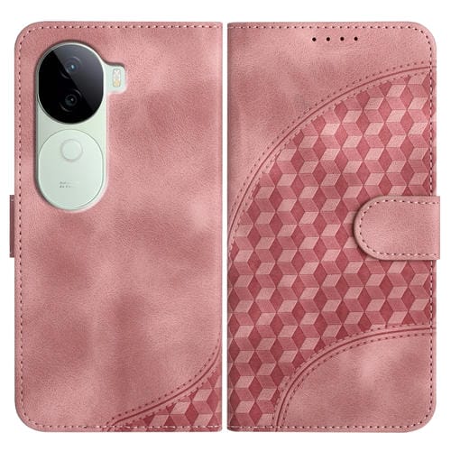 Para Vivo Iqoo Z9S / V40E India Yx0060 Funda de Cuero para Teléfono con Relieve de Cabeza de Elefante y Cordón (Rosa)