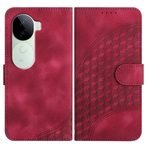 Para Vivo Iqoo Z9S / V40E India Yx0060 Funda de Cuero para Teléfono con Relieve de Cabeza de Elefante y Cordón (Rosa Rojo)