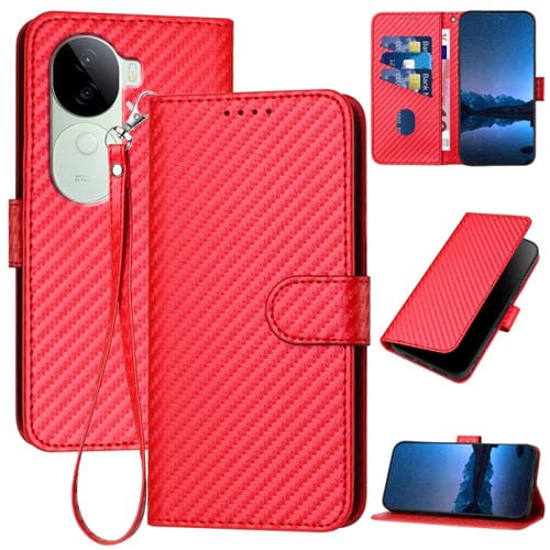 Funda de Cuero con Hebilla de Fibra de Carbono y Cordón para Vivo Iqoo Z9S/V40E (India Yx0070) (Rojo)