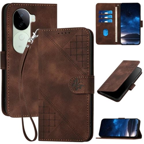 Para Vivo Iqoo Z9S / V40E India Yx0080 Funda de Cuero con Tapa y Patrón En Relieve de Mariposa y Cuadrícula con Cordón (Café)