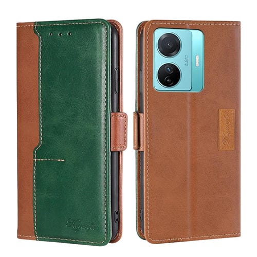 Para Vivo S15E 5G/T1 Snapdragon 778G Contrast Color Side Hebilla de Cuero Caja (Marrón Claro + Verde)
