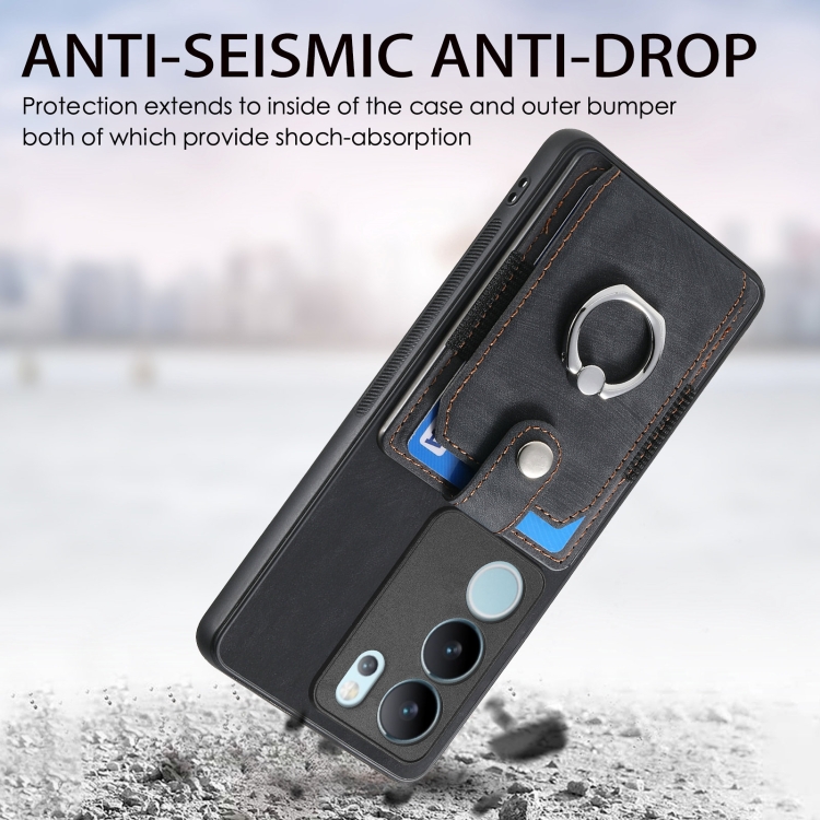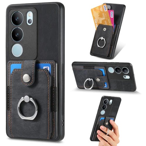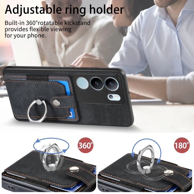 Para Vivo S17 Pro Funda para Teléfono con Billetera y Tarjeta con Anillo con Sensación de Piel Retro (Negro)