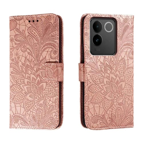 Para Vivo S17E Funda para Teléfono de Cuero con Tapa y Estampado de Flores de Encaje (Oro Rosa)