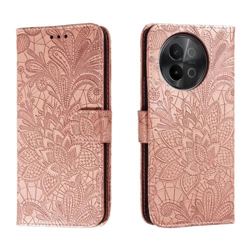 Para Vivo S18E Funda para Teléfono de Cuero con Tapa y Estampado de Flores de Encaje (Oro Rosa)