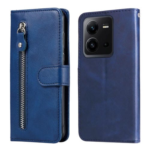 Para Vivo V25 5G/V25E 4G Funda de Cuero con Cremallera y Textura de Becerro para Teléfono (Azul)