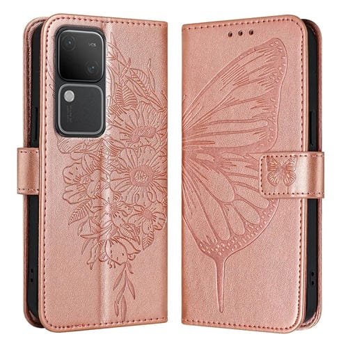 Para Vivo V30 5G / V30 Pro 5G Funda para Teléfono de Cuero con Mariposa En Relieve Global (Oro Rosa)