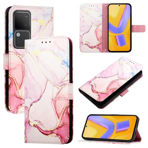 Para Vivo V30 / V30 Pro 5G Global Pt003 Funda de Cuero con Tapa con Patrón de Mármol (Oro Rosa)