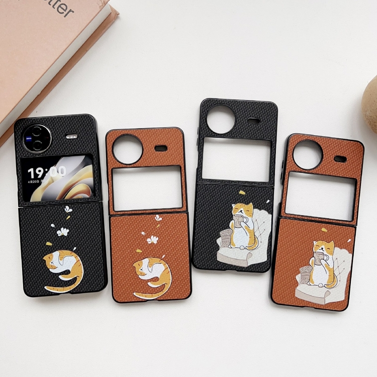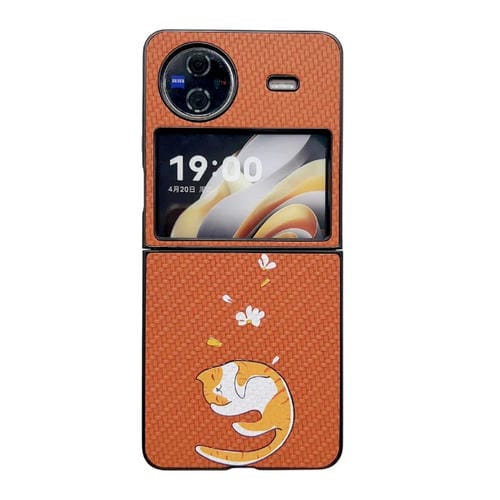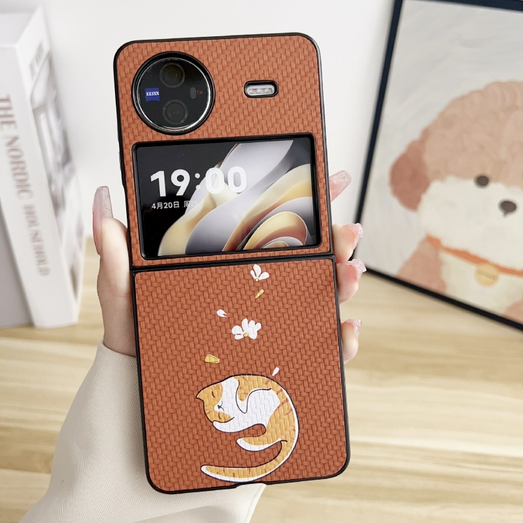 Para Vivo X Flip Funda para Teléfono con Patrón de Dibujo Coloreado con Textura Trenzada (Gato Durmiente Marrón)