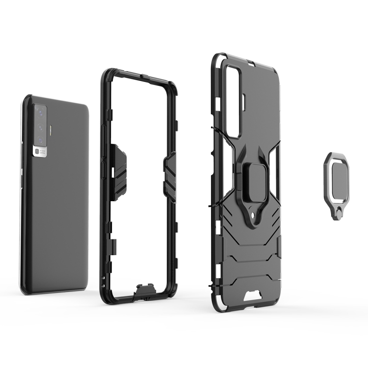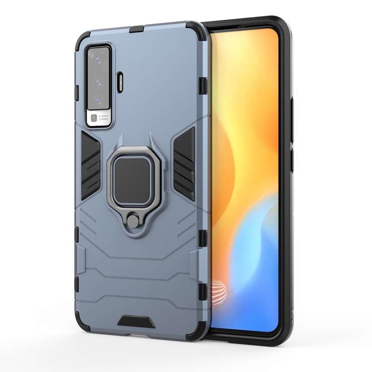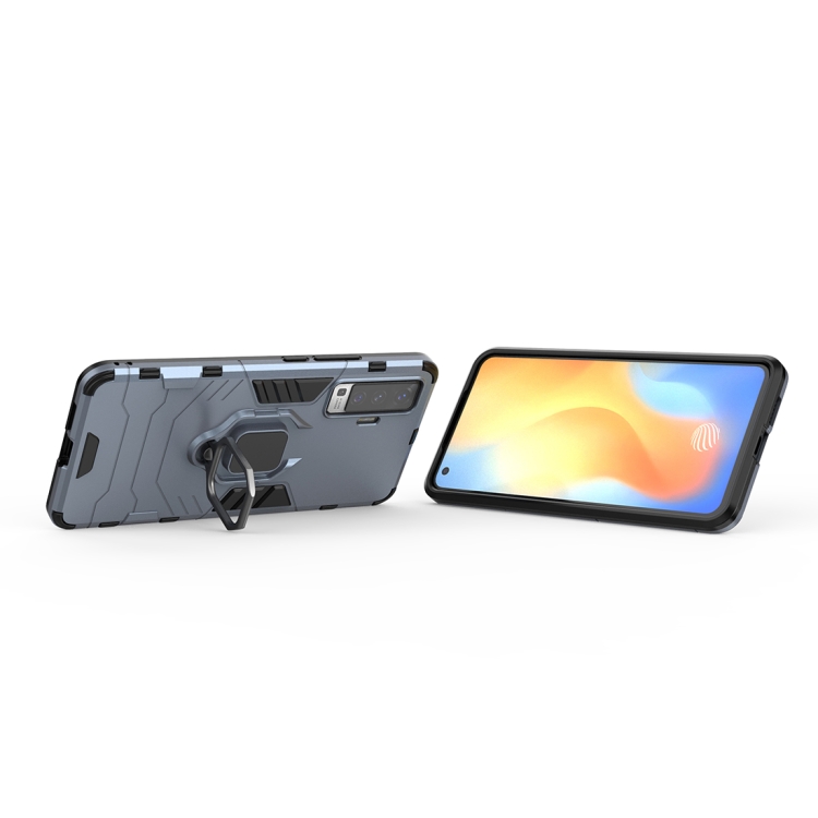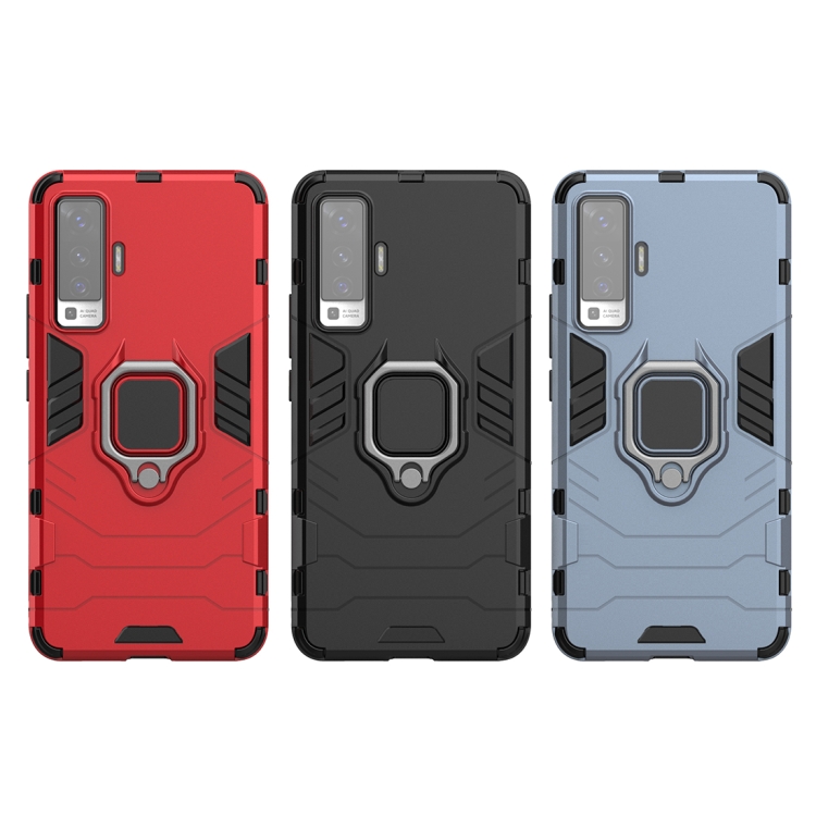 Para Vivo X50 PC + TPU Funda Protectora Anticaída con Soporte para Anillo (Azul Marino)