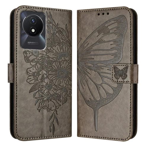 Para Vivo Y02 / Y02A / Y02T / Y11 2023 Funda para Teléfono de Cuero con Mariposa En Relieve (Gris)
