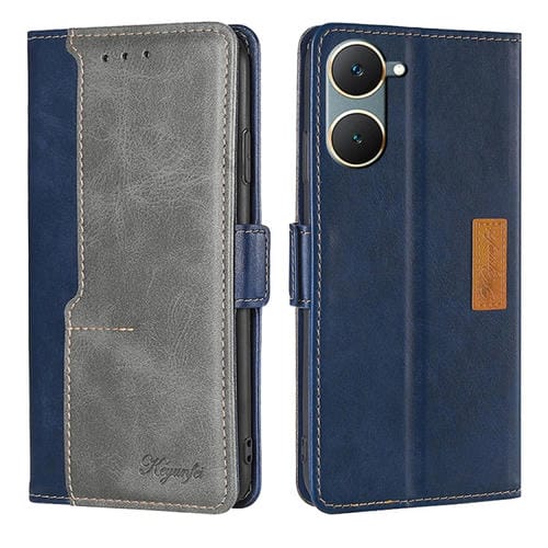 Para Vivo Y03 4G Funda para Teléfono de Cuero con Hebilla Lateral de Color En Contraste (Azul + Gris)