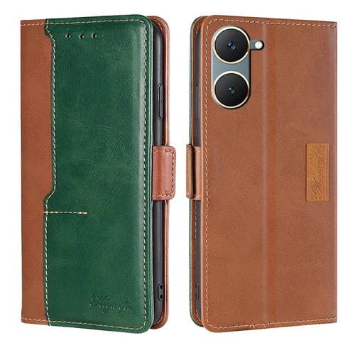 Para Vivo Y03 4G Funda para Teléfono de Cuero con Hebilla Lateral de Color En Contraste (Marrón Claro + Verde)