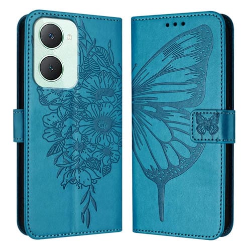Para Vivo Y03 4G Funda para Teléfono de Cuero con Mariposa En Relieve Global (Azul)