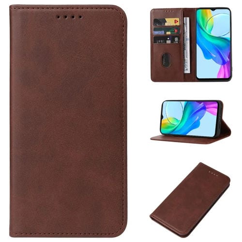 Para Vivo Y03 Funda de Cuero para Teléfono con Cierre Magnético (Marrón)