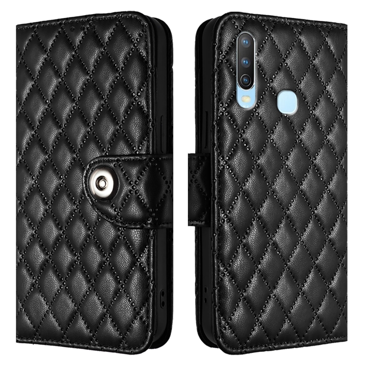 Para Vivo Y17 / Y15 / Y12 / Y11 2019 Funda para Teléfono de Cuero con Tapa con Textura Rómbica y Cordón (Negro)