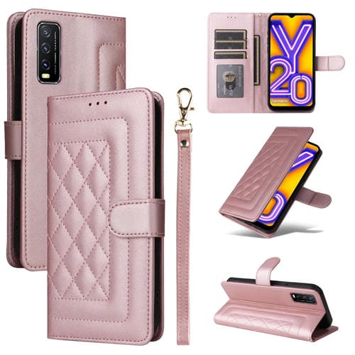 Para Vivo Y20 / Y20I Funda para Teléfono con Tapa de Cuero con Entramado de Diamantes (Oro Rosa)
