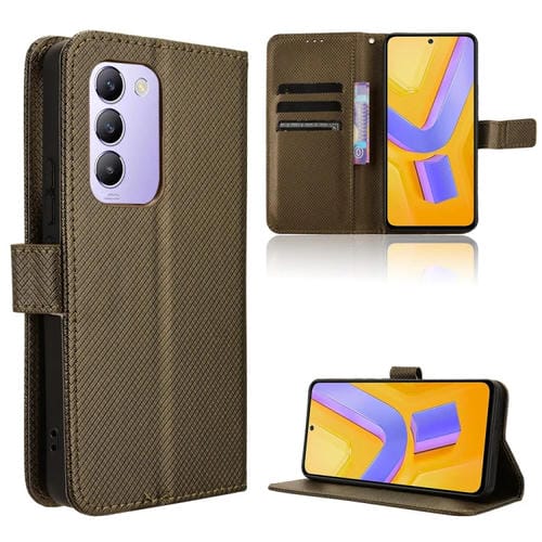 Para Vivo Y200E 5G / Y100 5G Ind Funda de Cuero con Textura de Diamante (Marrón)