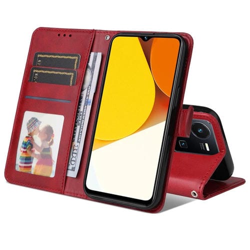 Para Vivo Y35 4G / Y22 / Y22S Jsm Funda de Cuero con Textura de Becerro (Rojo)