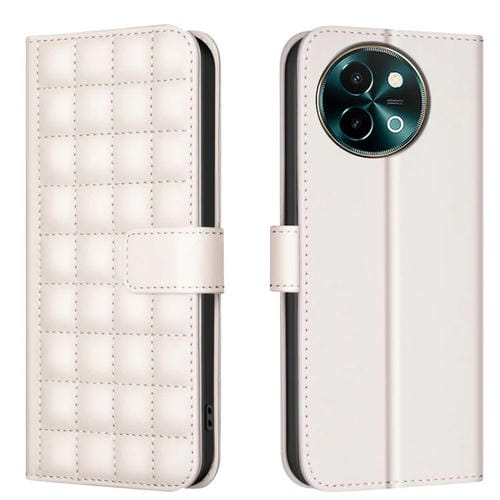 Para Vivo Y38 5G / Y200I 5G Funda de Cuero con Textura Cuadrada para Teléfono (Beige)