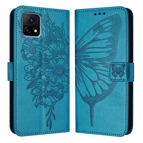 Para Vivo Y52S 5G / Iqoo U3 / Y31S 5G Funda para Teléfono de Cuero con Mariposa En Relieve (Azul)