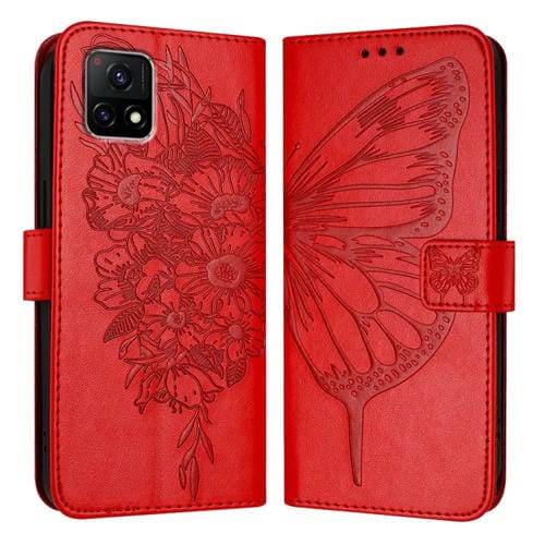 Para Vivo Y52S 5G / Iqoo U3 / Y31S 5G Funda para Teléfono de Cuero con Mariposa En Relieve (Rojo)