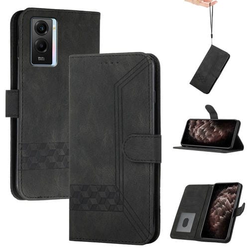 Para Vivo Y55S 2023 5G / Y55 5G Funda para Teléfono de Cuero con Sensación de Piel Cúbica Global (Negro)
