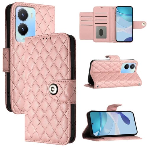 Para Vivo Y56 / Y16 / Y02S Funda para Teléfono con Tapa de Cuero con Textura Rómbica y Cordón (Rosa Coral)