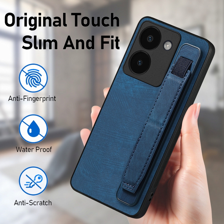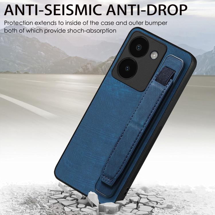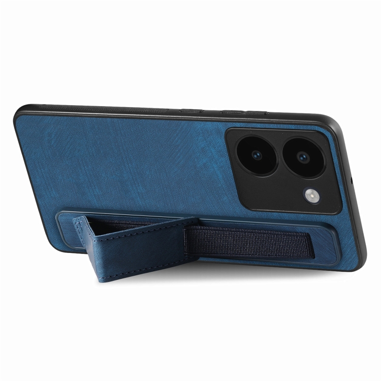 Para Vivo Y77 5G Funda de Teléfono con Soporte de Pulsera Retro de Cuero (Azul)