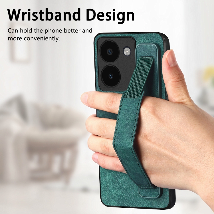Para Vivo Y78 + Funda de Teléfono con Soporte de Pulsera Retro (Verde)