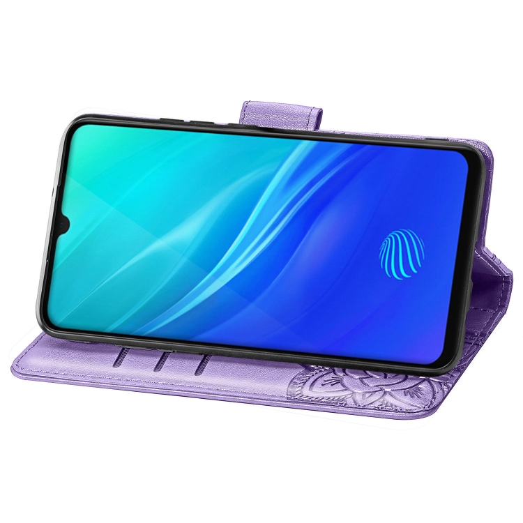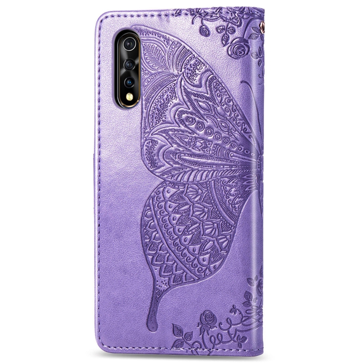 Para Vivo Y7S / S1 Butterfly Love Flowers Estuche de Cuero con Tapa Horizontal En Relieve con Soporte, Ranuras para Tarjetas, Billetera y Cordón (Morado Claro)
