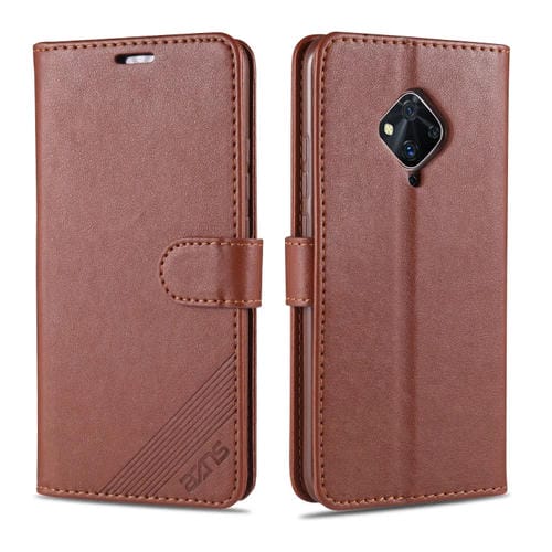 Para Vivo Y9S / V17 Azns Estuche de Cuero con Tapa Horizontal con Textura de Piel de Oveja con Soporte, Ranuras para Tarjetas y Billetera (Marrón)