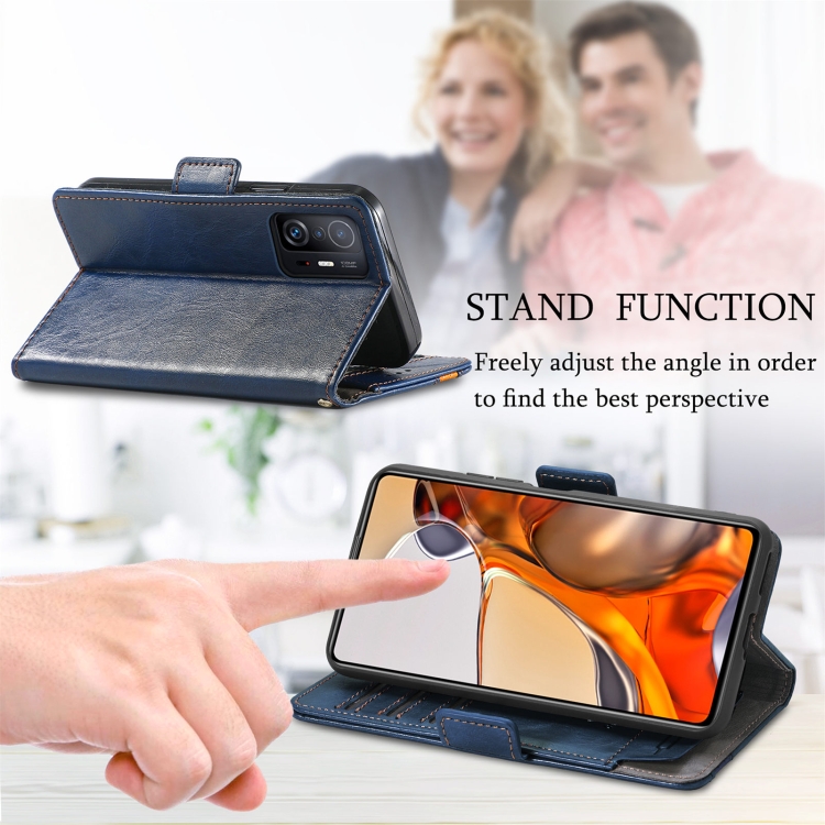Para Xiaomi 11T / 11T Pro Caseneno Dual Dual Hebilla Magnética Caja de Cuero con Soporte y Tragamonedas y Billetera (Azul)