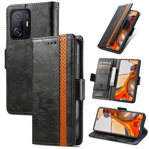 Para Xiaomi 11T / 11T Pro Caseneno Dual Dual Hebilla Magnética Funda de Cuero con Soporte y Ranuras para Tarjetas y Billetera (Negro)