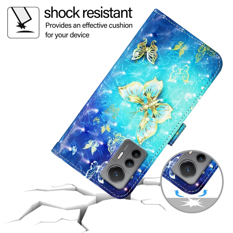 Para Xiaomi 12 Lite Funda para Teléfono de Cuero con Tapa Horizontal con Pintura 3D (Mariposa Dorada)