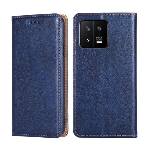 Para Xiaomi 13 Estuche de Teléfono de Cuero Magnético de Color Sólido de Aceite Brillante (Azul)