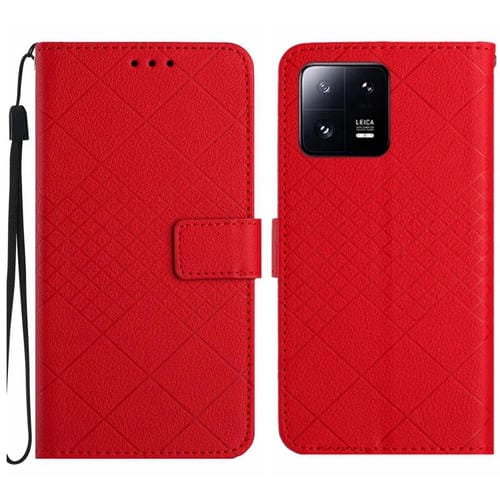 Para Xiaomi 13 Funda de Cuero con Textura de Rejilla Rómbica (Rojo)