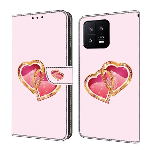 Para Xiaomi 13 Funda de Cuero Pintada con Cristales (Love Peach)