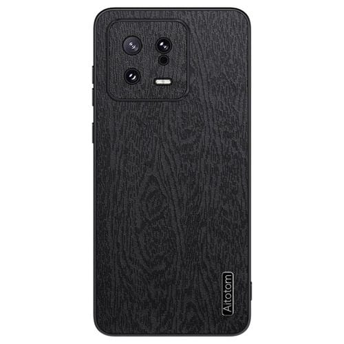 Para Xiaomi 13 Funda de Teléfono a Prueba de Golpes de Cuero con Corteza de Árbol (Negro)