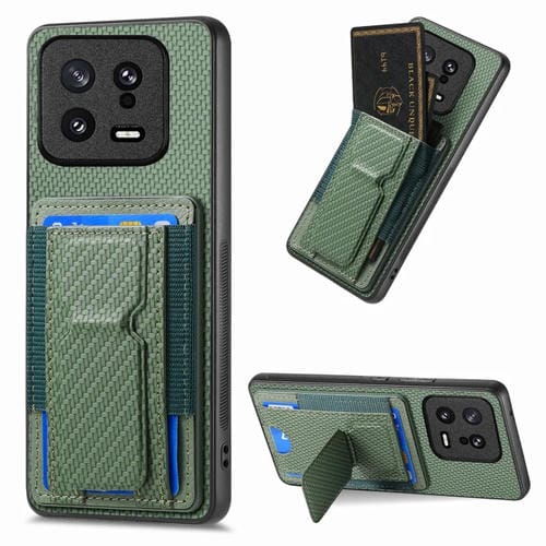 Para Xiaomi 13 Funda Plegable para Teléfono con Bolsa para Tarjeta Elástica con Soporte Plegable de Fibra de Carbono (Verde)