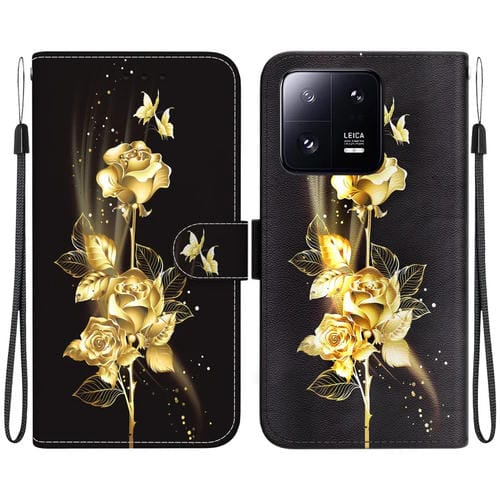Para Xiaomi 13 Pro 5G Funda de Teléfono de Cuero con Dibujo Coloreado con Textura de Cristal (Mariposa Dorada Rosa)