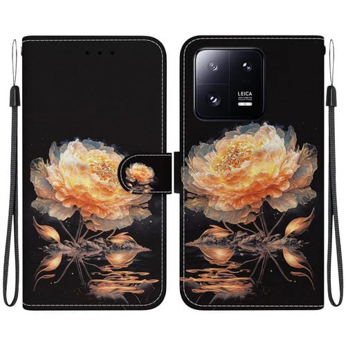 Para Xiaomi 13 Pro 5G Funda de Teléfono de Cuero con Dibujo Coloreado con Textura de Cristal (Peonía Dorada)