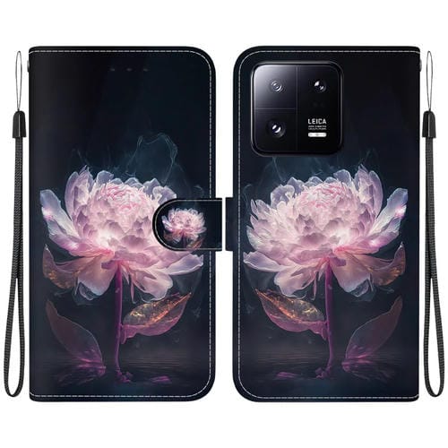 Para Xiaomi 13 Pro 5G Funda de Teléfono de Cuero con Dibujo Coloreado con Textura de Cristal (Peonía Púrpura)
