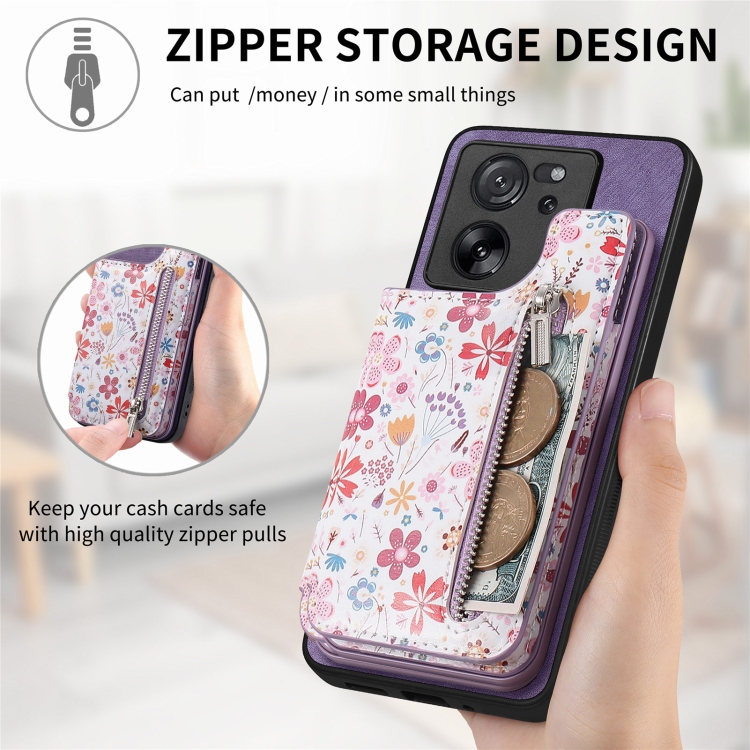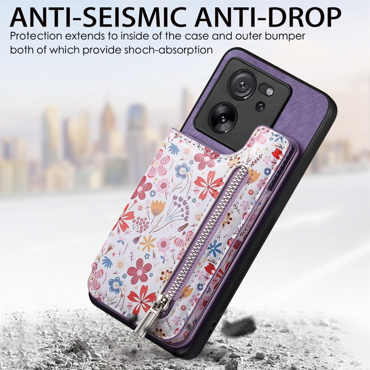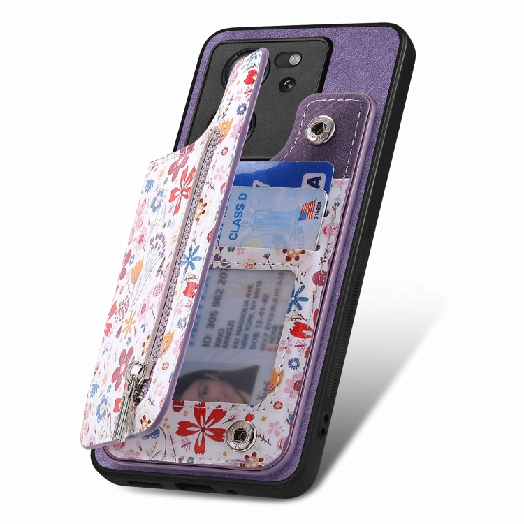 Para Xiaomi 13 Pro 5G Funda Trasera para Teléfono con Billetera con Cremallera Pintada Retro (Púrpura)